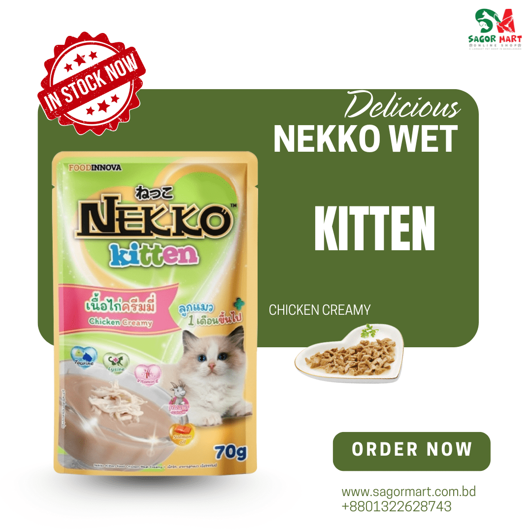 Treat your kitten to Nekko Kitten Food – Chicken Creamy (70g)! Made with all-natural ingredients and enriched with vitamins and minerals, it’s a nutritious delight for your little one. Order now for a healthy, happy kitten!