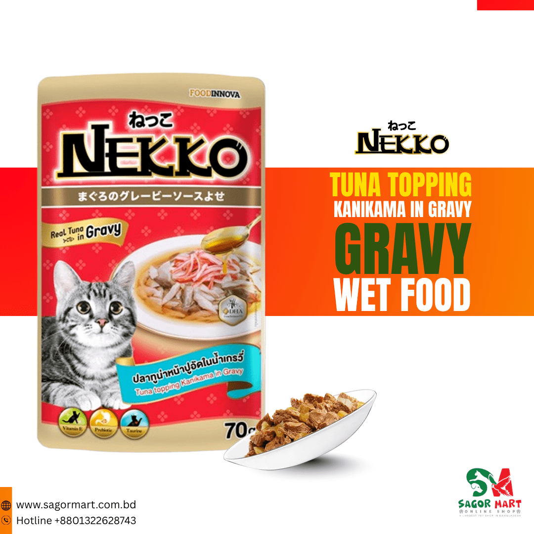 Nekko Tuna Topping Kanikama in Gravy Cat Food Contains Calcium which helps to build strong bones and teeth,Omega 3,6 improving nourish skin and coat,Taurine is an amino acid that is needed. Assist in the vision and work of the coronary arteries. Limonite is a mineral found in Southern Japan, Helps reduced smell of excrement and urine. Vitamin E help protect damage caused by face radicals of your pet.